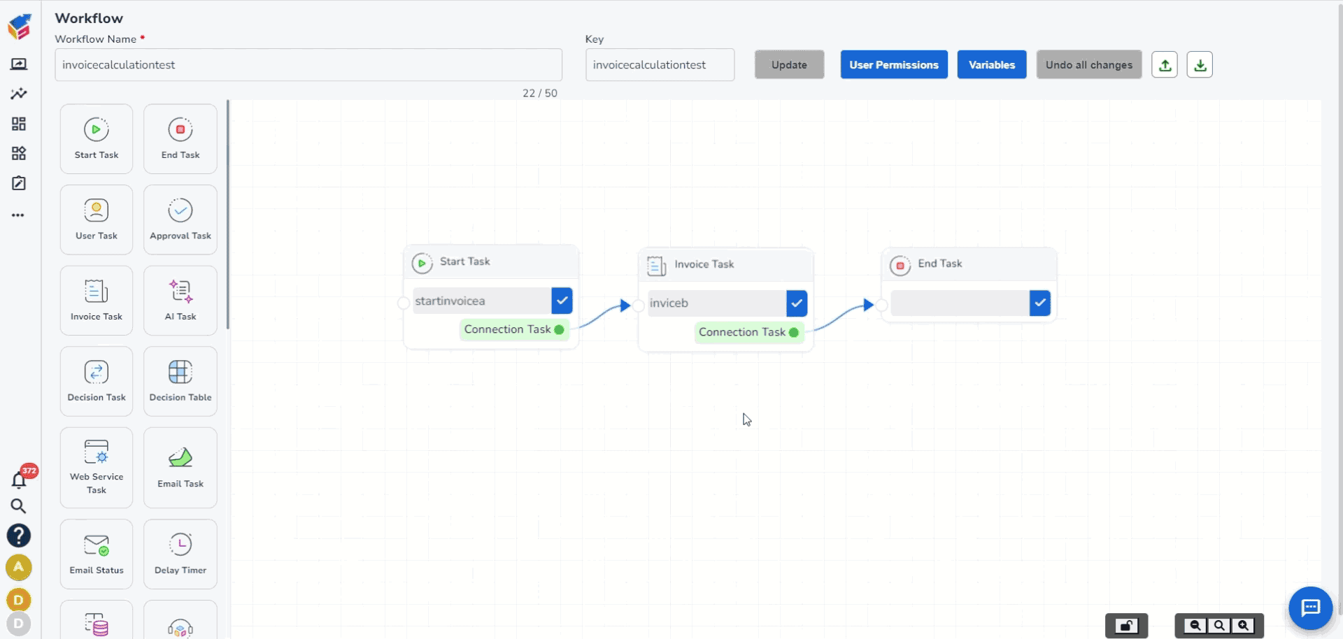 - To utilize the invoice task feature, simply drag and drop it to the desired location. Access the properties of the task by right-clicking on it.
